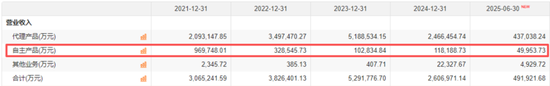 代理收入在2024年腰斩之后,2025年上半年继续暴跌,实现43.7亿元,同比下滑75.16%。
